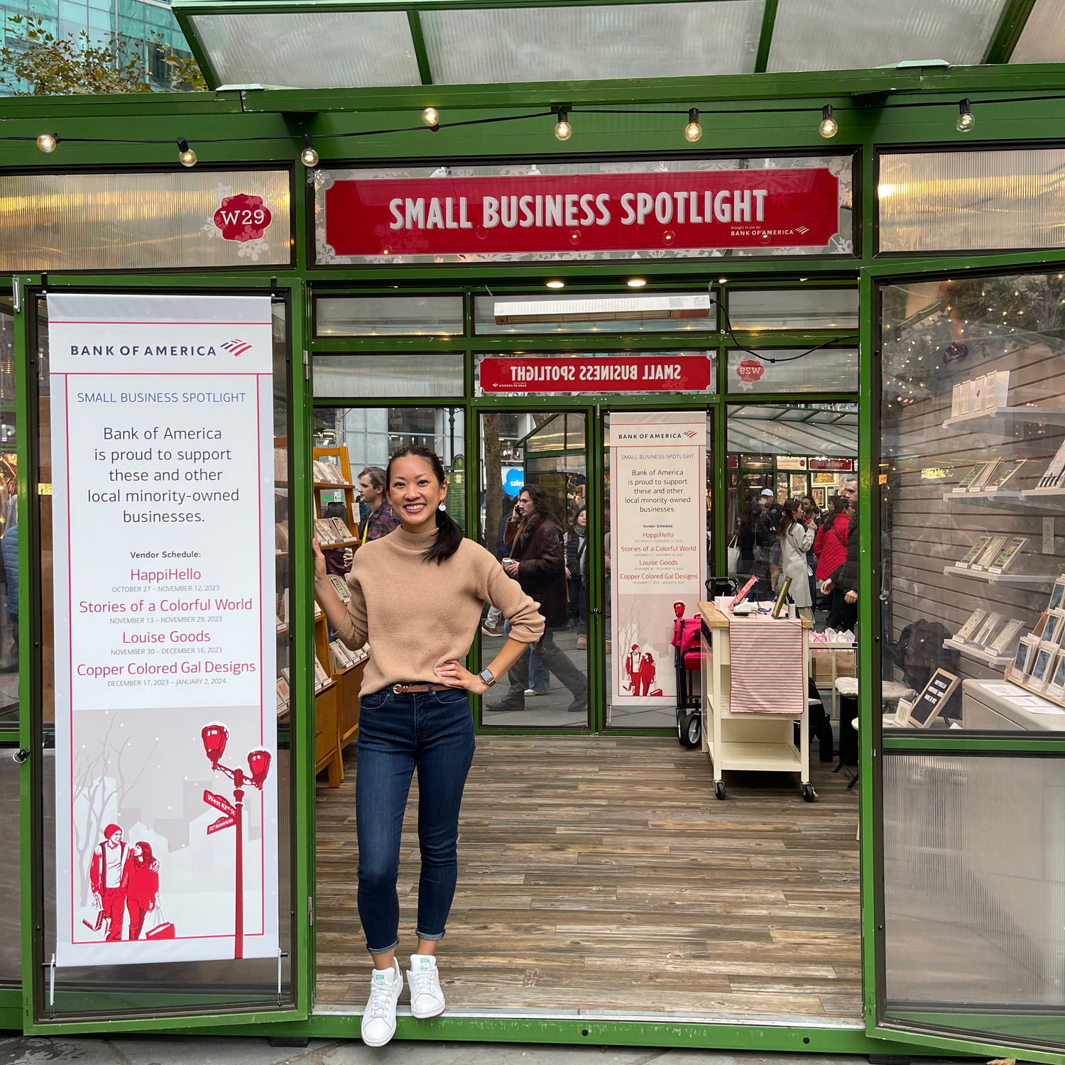 In 2023, HappiHello was honored as a Bank of America Small Business Spotlight Winner in Bryant Park, recognizing the studio’s craftsmanship, creativity, and impact within the small business community.